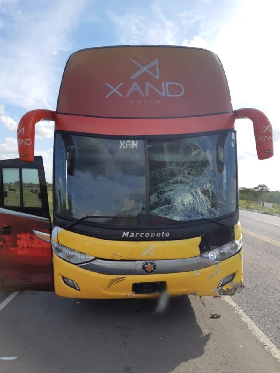 Um homem morreu na tarde de domingo (23/06) em um acidente envolvendo uma moto e o ônibus da banda Aviões do Forró, no km 17
