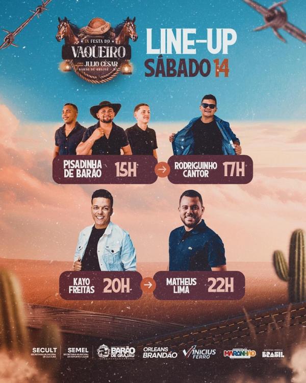 A programação musical deste sábado conta com atrações que prometem animar o público até altas horas, com apresentações de Pisadinha de Barão, Rodriguinho Cantor, Kayo Freitas e Matheus Lima. No domingo programação conta com atrações de peso: Banda Sedução, Flávio Maranhão, Rey Vaqueiro, Cláudio Ney e Juliana, prometendo um repertório diversificado, com muito forró, vaquejada e romantismo.