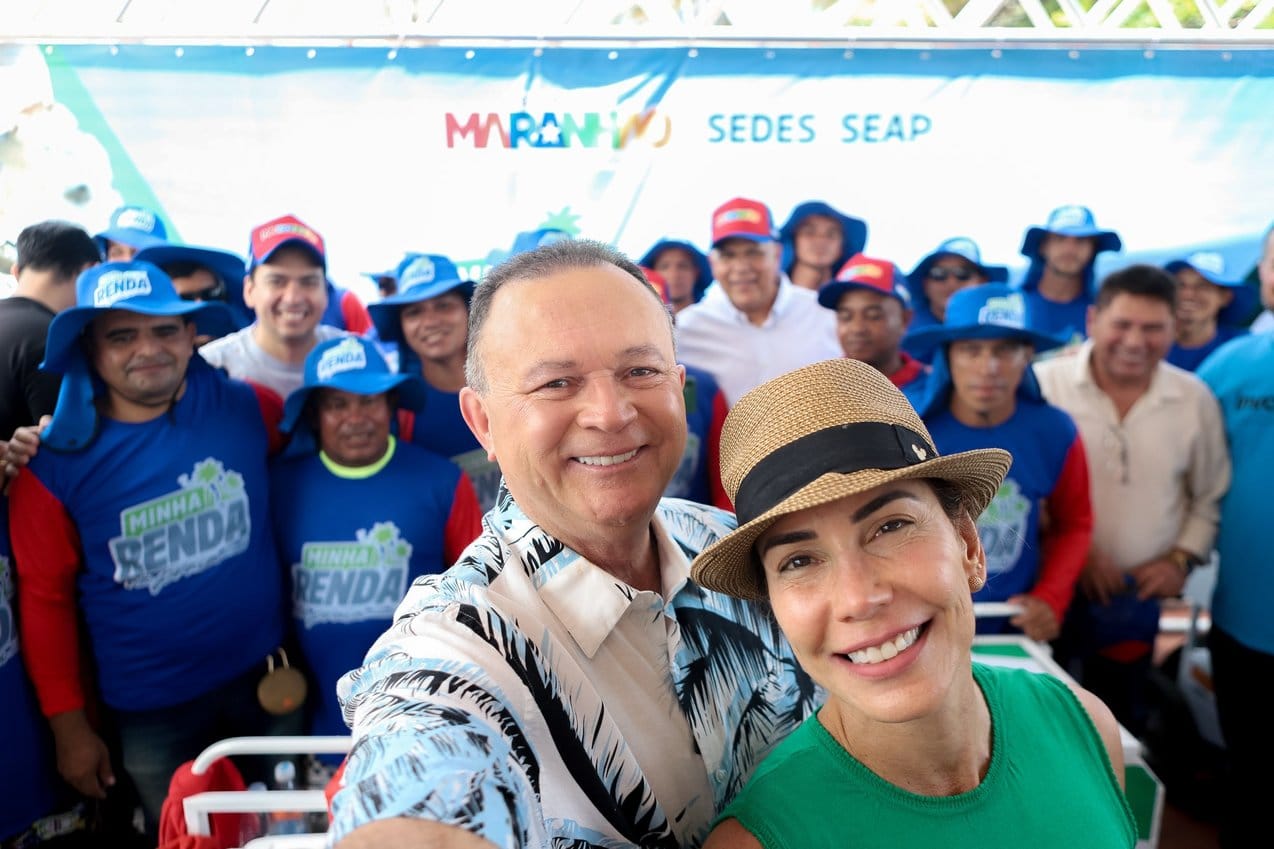 Governador e a primeira-dama do Maranhão Larissa Brandão, durante a entrega dos carrinhos do Minha Renda Praia (Foto: Rodrigo Ribeiro)