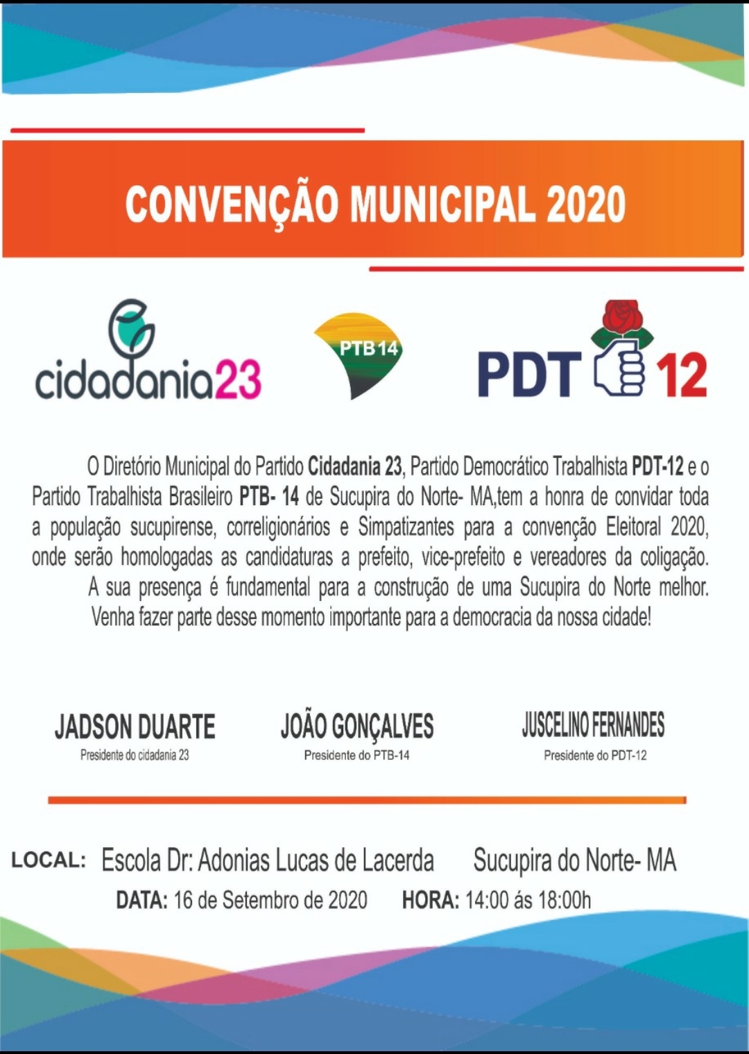Também foi definido para o dia 16 a convenção partidária para homologação dos nomes.