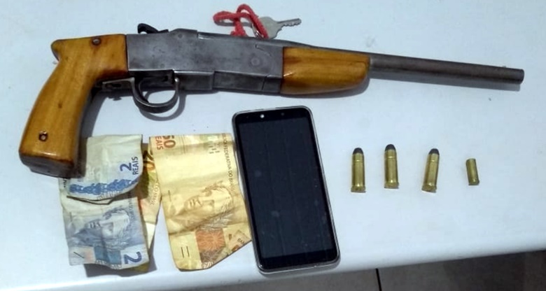 Além do revólver e munições a PM apreendeu uma moto Honda Fan e um aparelho celular.