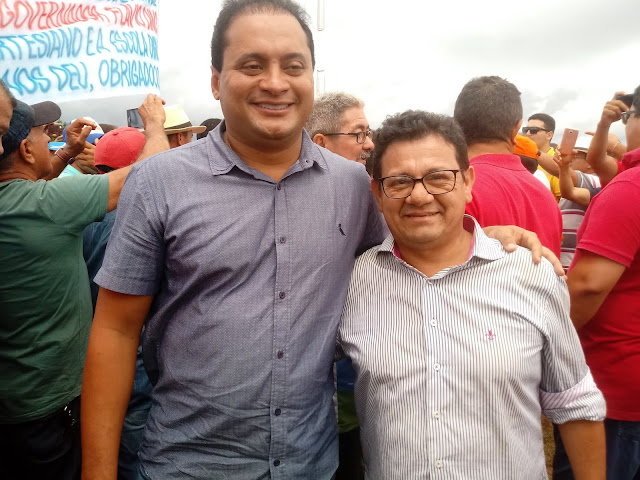 Secretário de agricultura Josivan Bílio, e líder da associação comunitária do povoado Belém, abraça o governador Flávio.