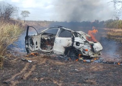 Testemunhas relataram que, ao colidir com os trilhos da linha férrea que corre paralelamente à rodovia, faíscas podem ter provocado o incêndio que rapidamente consumiu o automóvel.