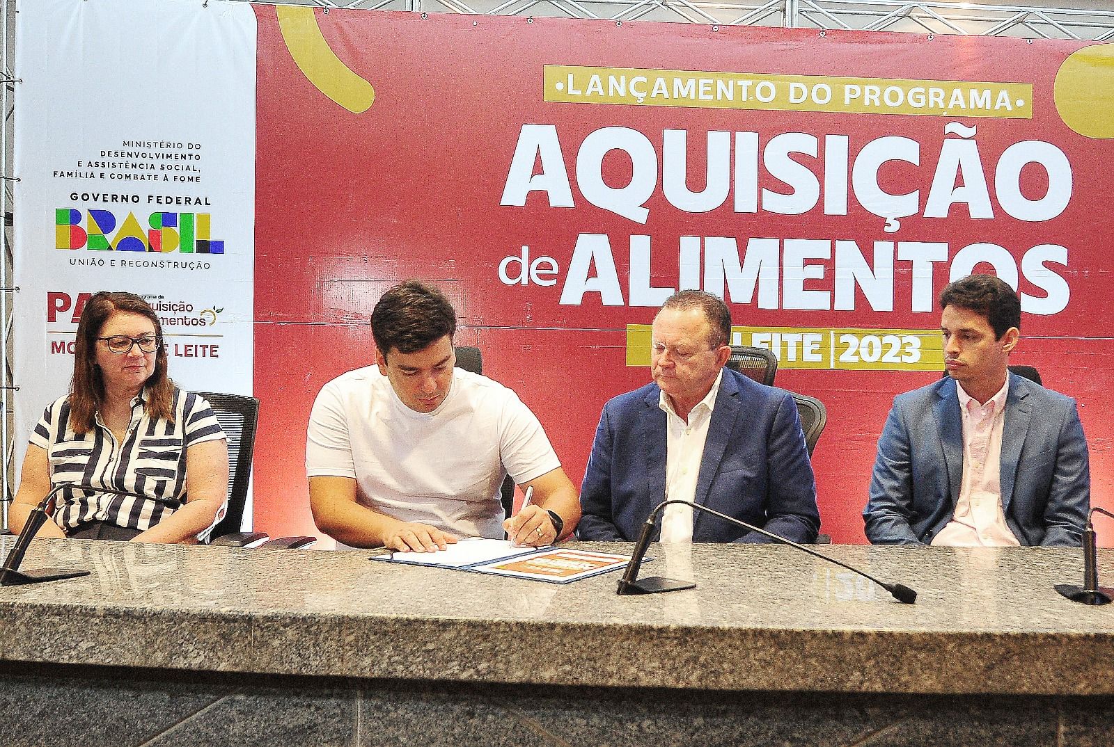 Foi lançado nesta terça-feira (27), no Palácio Henrique de La Roque, o Programa de Aquisição de Alimentos (PAA Leite). Na solenidade, o governador Carlos Brandão e o secretário de Estado do Desenvolvimento Social, Paulo Casé, assinaram termos de cooperação e adesão com os municípios beneficiados para a distribuição de quase 2 milhões de litros de leite. Além de auxiliar no combate à fome de mais de 10 mil famílias em situação de vulnerabilidade social, a oferta gratuita beneficiará produtores de leite com geração de emprego e renda e doações a 369 entidades socioassistenciais do Maranhão.