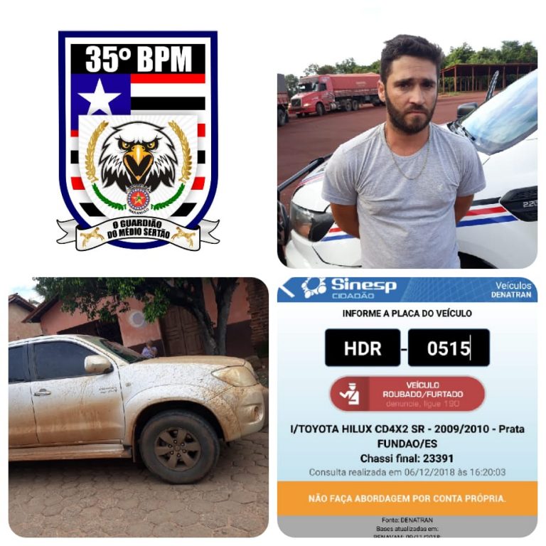 POLICIAIS MILITARES DO 35º BATALHÃO DE SERVIÇO NO MUNICÍPIO DE PARAIBANO-MA RECUPERAM VEÍCULO ROUBADO