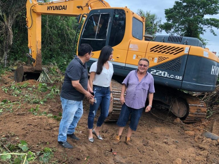 Deputada eleita Daniella Tema e secretário Genilson Araújo visitam obra de limpeza do leito do Riacho Tuntum