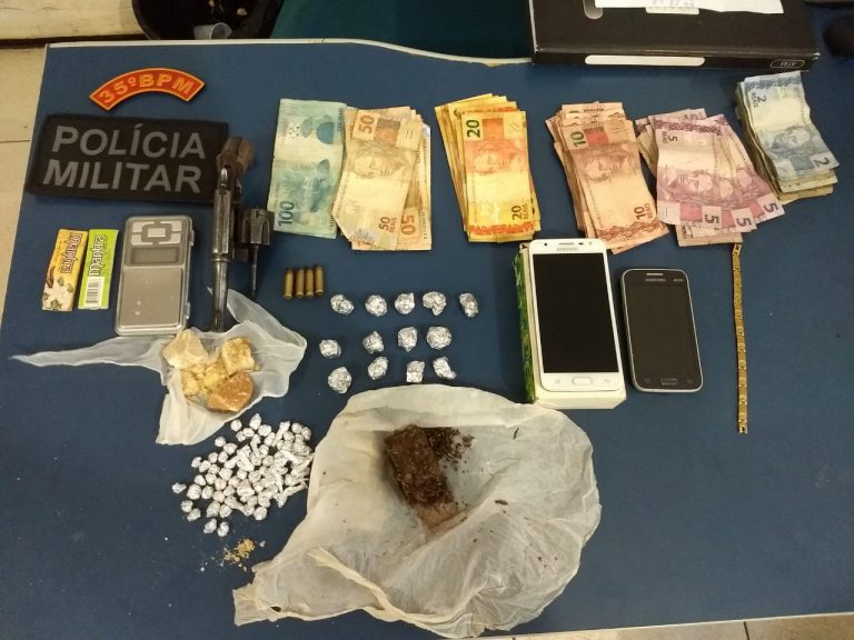 GUARNIÇÃO DO 35º BATALHÃO DA POLÍCIA MILITAR APREENDE ARMA E DROGAS EM BOCA DE FUMO NO MUNICÍPIO DE PARAIBANO-MA