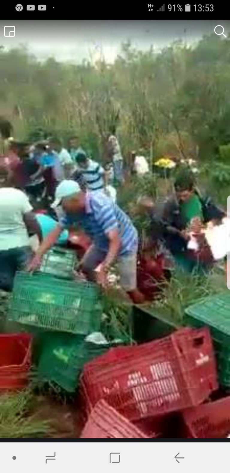 CAMINHÃO DE VERDURAS TOMBA PRÓXIMO A SÃO JOÃO DOS PATOS (POVOADO PINGA),E POPULAÇÃO LEVA A CARGA