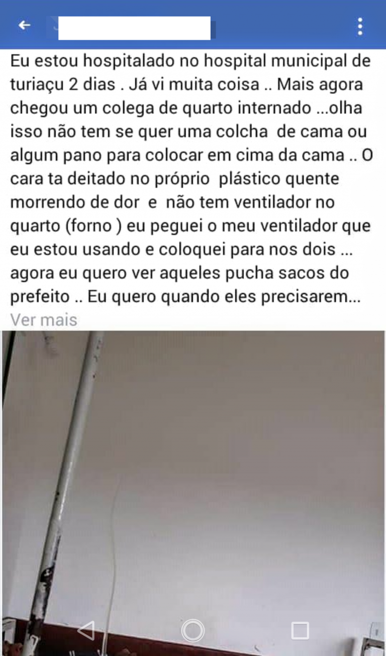 Pacientes do hospital municipal da cidade de Turiaçu usam as redes sociais para denunciar o descaso do município com os …