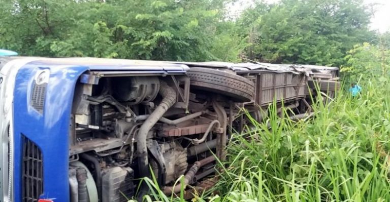 Ônibus tomba após bater em caminhão deixando 13 feridos na BR 135