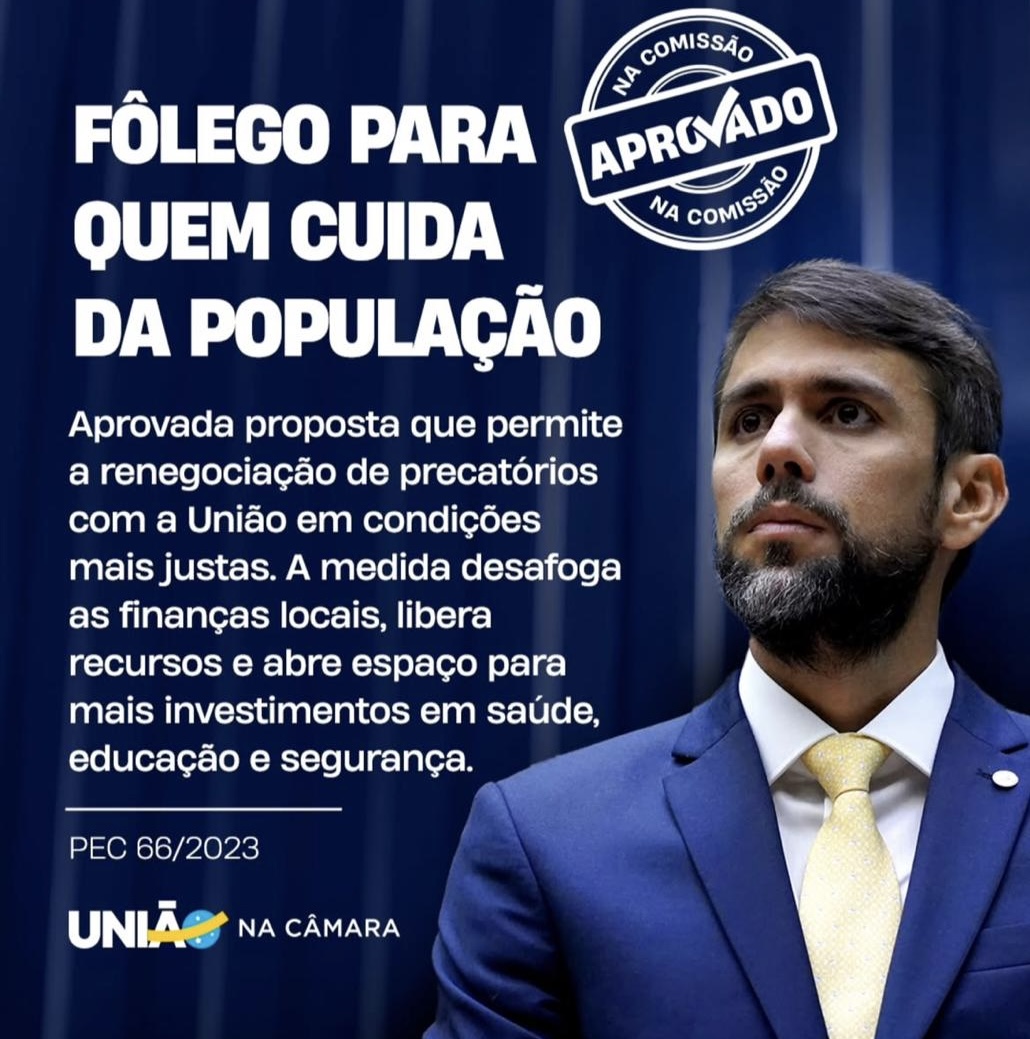 O deputado federal Pedro Lucas Fernandes (União Brasil-MA), líder do partido na Câmara, comemorou a aprovação, em segundo turno, da PEC 66/2023, que trata de novas regras para o pagamento de precatórios e traz importantes medidas de alívio fiscal para estados e, especialmente, municípios. A proposta, considerada a principal pauta municipalista da atual legislatura, contou com o apoio decisivo da bancada do União Brasil.