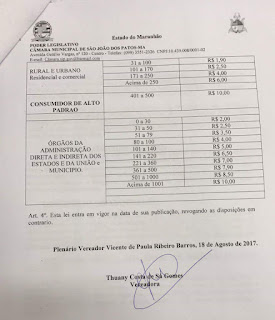 O Projeto de emenda de número 04/2017 de 21 de agosto de 2017 a lei 243/2003 de 31/12/2003.Consiste na readequação das alíquotas sobre a base do cálculo sobre a iluminação pública,que hoje é uma das maiores de todo o estado do Maranhão.