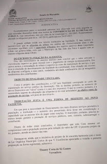 As desculpas por parte dos vereadores da Situação,São várias,desde a queda na arrecadação,até falarem que se DIMINUIR a taxa, as ruas irão ficar no escuro pois a prefeitura não terá dinheiro suficiente para cuidar da iluminação pública.