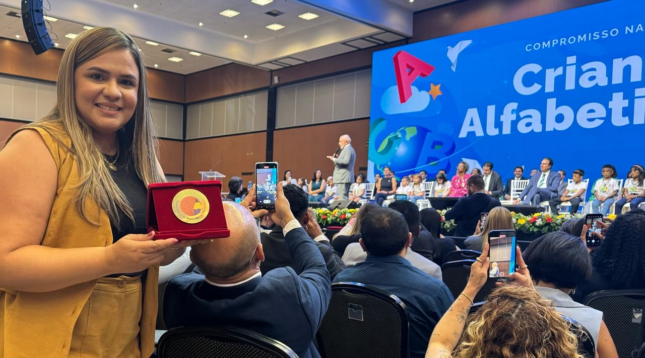 Helainne Almeida representa o município em cerimônia de premiação do Ministério da Educação, após conquista do Selo Ouro em Alfabetização